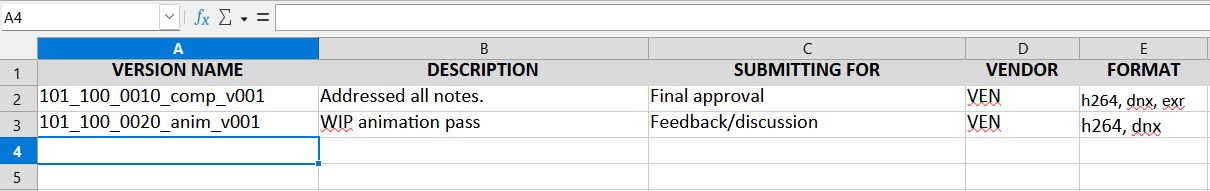The only required column is VERSION NAME. All other columns will be ingested into that Version in Shotgrid/Flow.